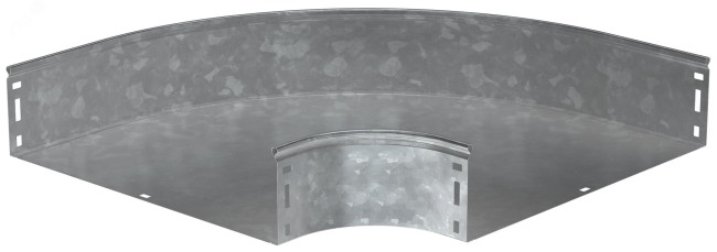 Поворот на 90 градусов плавный предназначен для организации горизонтального поворота кабельной трассы на 90 градусов. Крышка аксессуара в комплект не входит.Аксессуар изготовлен из стали с цинковым покрытием, нанесенным погружением изделий в расплав цинка (защитный слой цинка не менее 55 мкм).